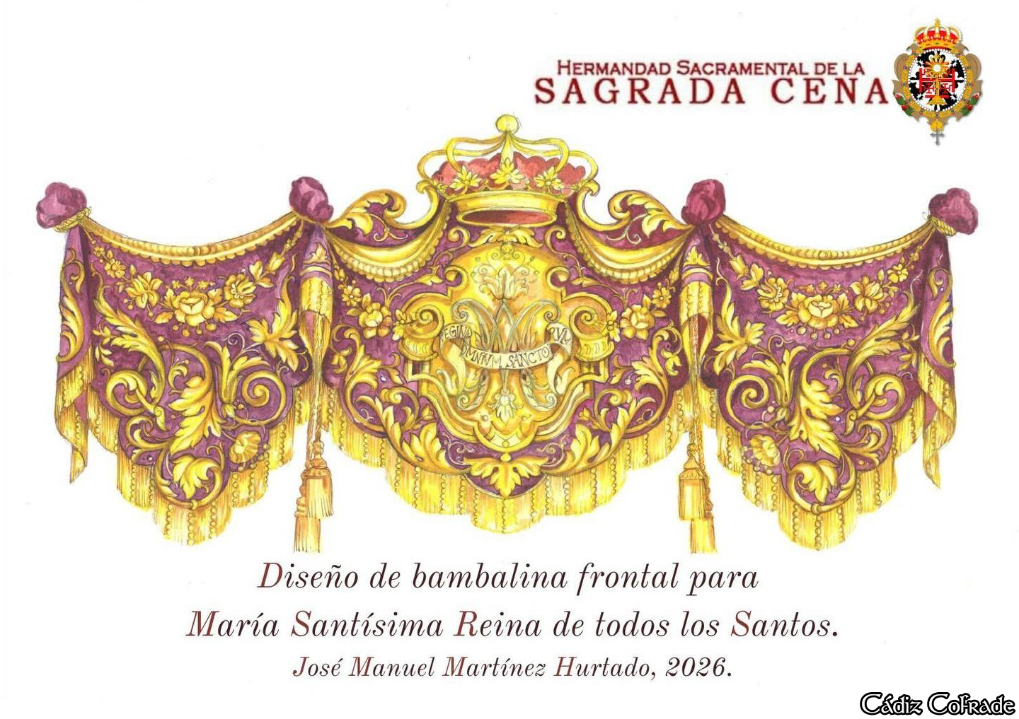 La Casa Pemán acoge una exposición donde se recoge la historia de la Hermandad de la Sagrada Cena en referencia a su devoción mariana, María Santísima Reina de Todos los Santos y su futura salida procesional el venidero Domingo de Ramos. Así, la corporación dominicana muestra comocerá el nuevo palio, con el corte real de las bambalinas en terciopelo color cardenal, los varales restaurados de Lucena y el nuevo respiradero del taller de Orovio de la Torre en Ciudad Real. Destaca también el diseñor del palio que ejecutará el granadino José Manuel Martínez Hurtado.