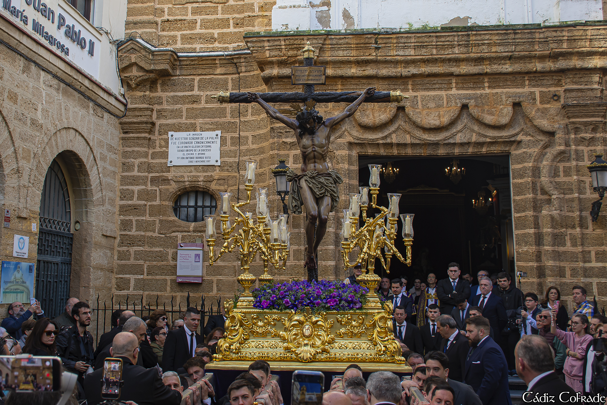 A continuación, comenzará la lectura de las 14 estaciones del Vía Crucis este año a cargo, por orden, del Rvdo. P. Rafael Iglesias Calvo (Director Espiritual del Consejo de Hermandades y Cofradías de Cádiz); Raquel Vázquez Pérez (Gerente de Onda Cádiz Radio y Televisión); Lourdes del Río Fernández (Jueza titular de Instrucción Número 4); Jesús Rivera Barcón (vice hermano mayor de la Archicofradía de La Palma); Victoria de Haro Diéguez (Directora de Canal Sur Radio Televisión de Cádiz); Inmaculada Ruiz Gené (hermana mayor de la Archicofradía del Pilar; Pablo Manuel Durio Díaz (Pregonero de la Semana Santa 2026); Pedro Reynoso Ramos (hermano mayor honorífico del Caído); Juan Carlos Jurado Barroso (presidente del Consejo de Hermandades y Cofradías de Cádiz); Rafael Guerrero Pinedo (delegado del Secretario de hermandades y cofradías de Cádiz); rvdo. P. Daniel Robledo Pérez (director espiritual de la Archicofradía de La Palma); Pedro Bueno Cruces (hermano mayor de la Archicofradía de La Palma); rvdo. P. Ricardo Jiménez Merlo (Ilmo. Sr. Deán de la S.A.I. Catedral) y el Ilmo. Sr. D. Ramón Darío Valdivia Giménez (Administrador Apostólico de la Diócesis de Cádiz y Ceuta).